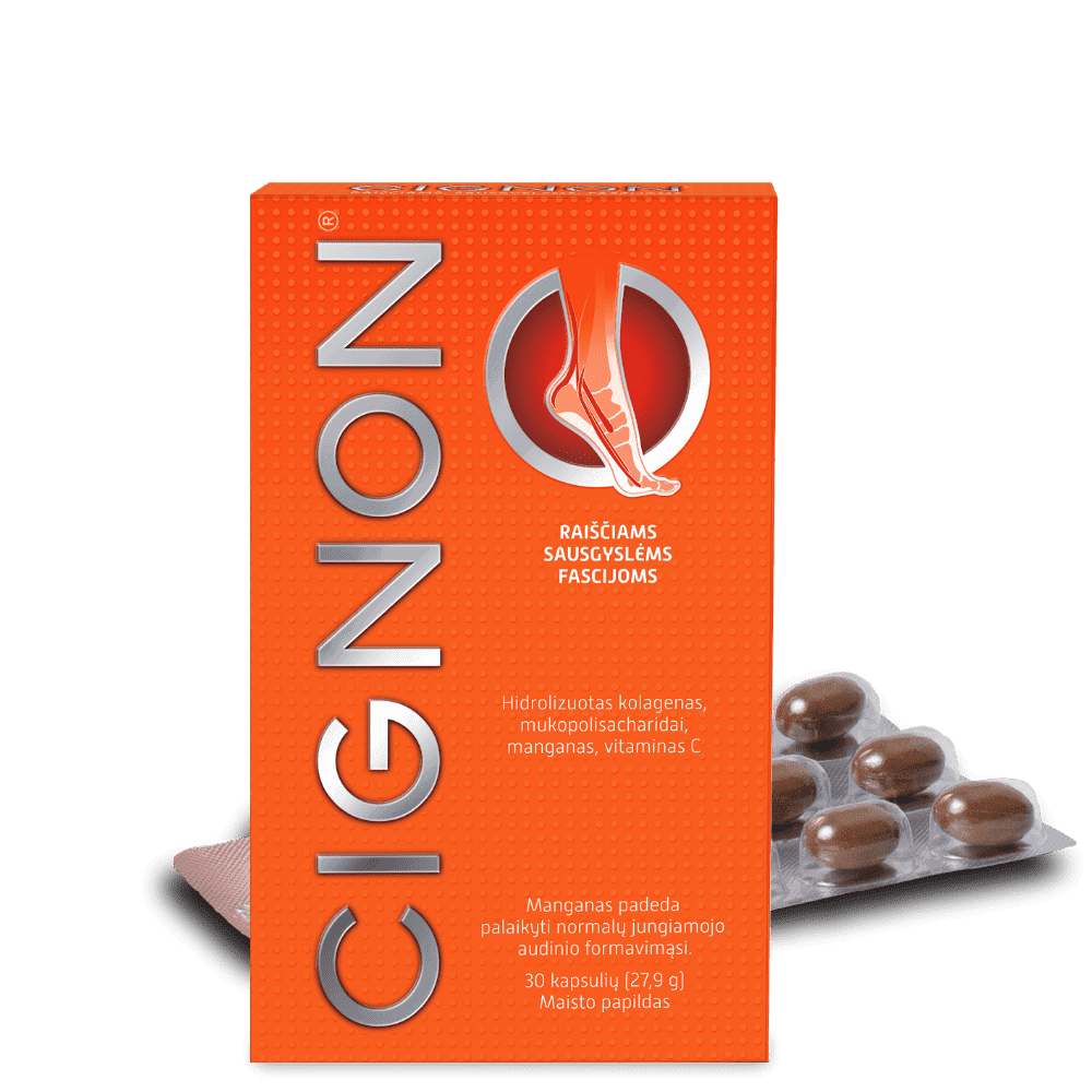 „Cignon” specialiai sukurtas raiščiams, sausgyslėms, fascijoms, sudėtyje turintis naudingas jiems medžiagas, padedančias palaikyti normalų jungiamojo audinio formavimąsi.